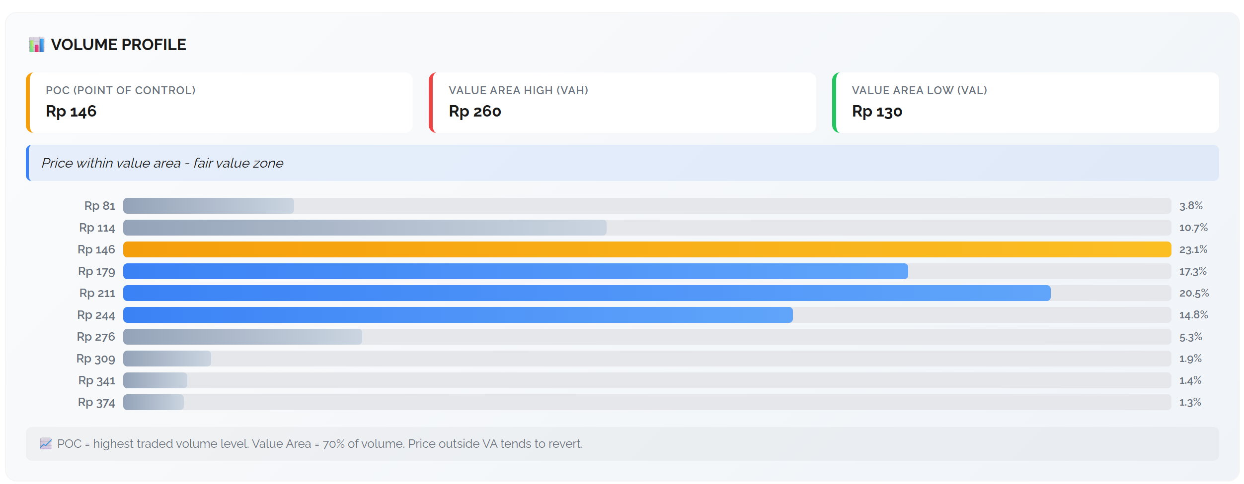 waktu HUMI area 120 - 130 pada banyak bilang gitu juga, malah kehilangan momentum hingga 360 dan orangnya sekarang gaberani ngefear lagi. Apresiasi market kalau jelek tentu turun tidak peduli ada gap/tidak dan vice versa. ini volume profile $HUMI