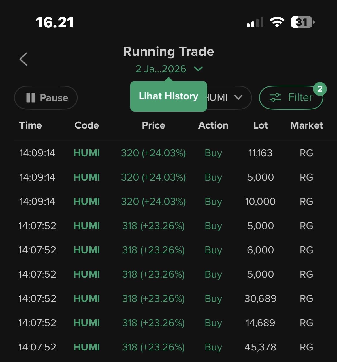 $HUMI ga ara gapapa, closing harga segini itu udah ATH, Besok2 koreksi dulu aja ke suport 312 biar jossssss.. π