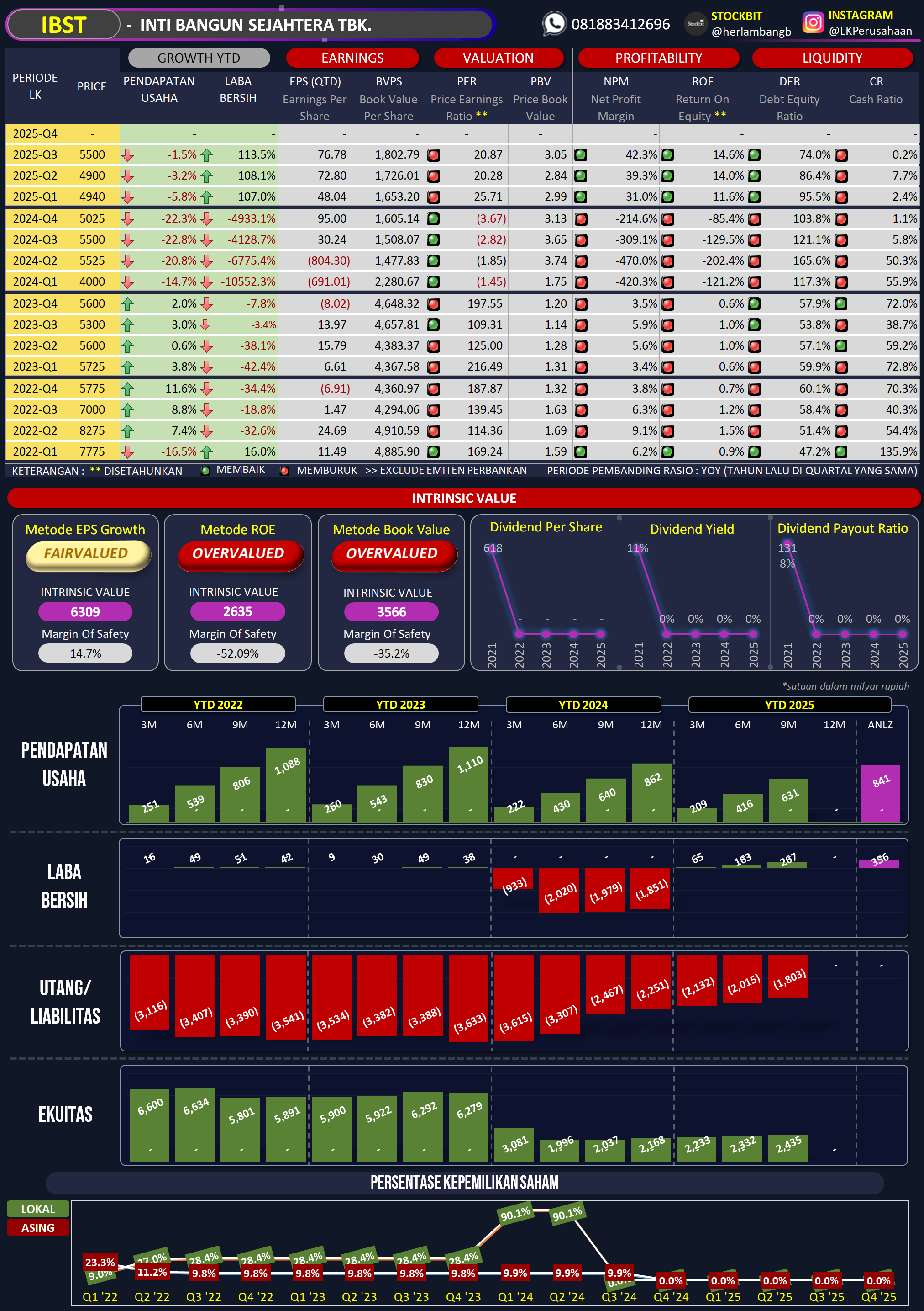 🔽 $IBST gap down ke 4740 (-510 / -9.71%) dari 5250