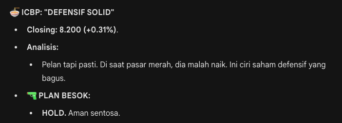 * Namun, waspadai likuiditas. Lonjakan utang jangka pendek dikombinasikan dengan arus kas operasi yang menipis adalah risiko nyata. Pastikan AISA mampu mengelola modal kerjanya lebih baik di tahun 2026.