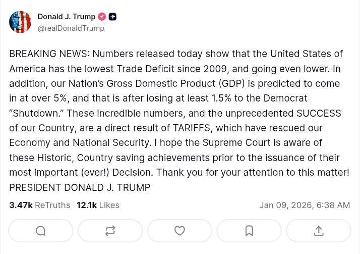 ➖ Trump mengklaim kesuksesan kebijakan tarif impor US dalam menekan defisit neraca perdagangan hingga ke level terendah sejak 2009.