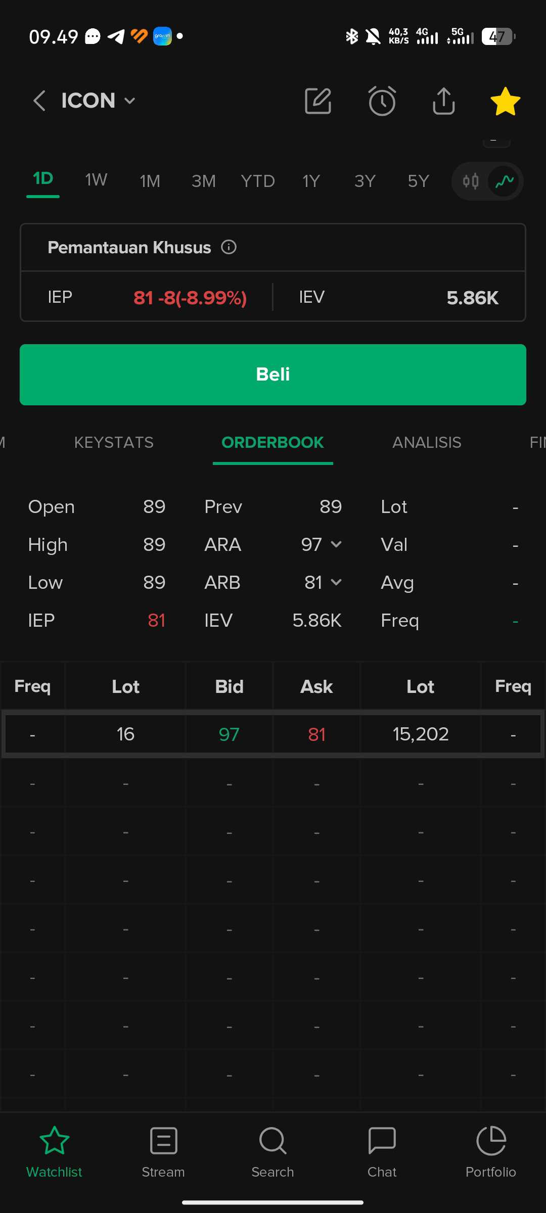 hari ini bandar $ICON 3x pake bid palsu di angka 92,