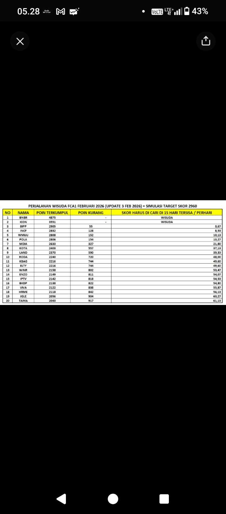 🔰update skor sementara saham FCA Kriteria 1🔰