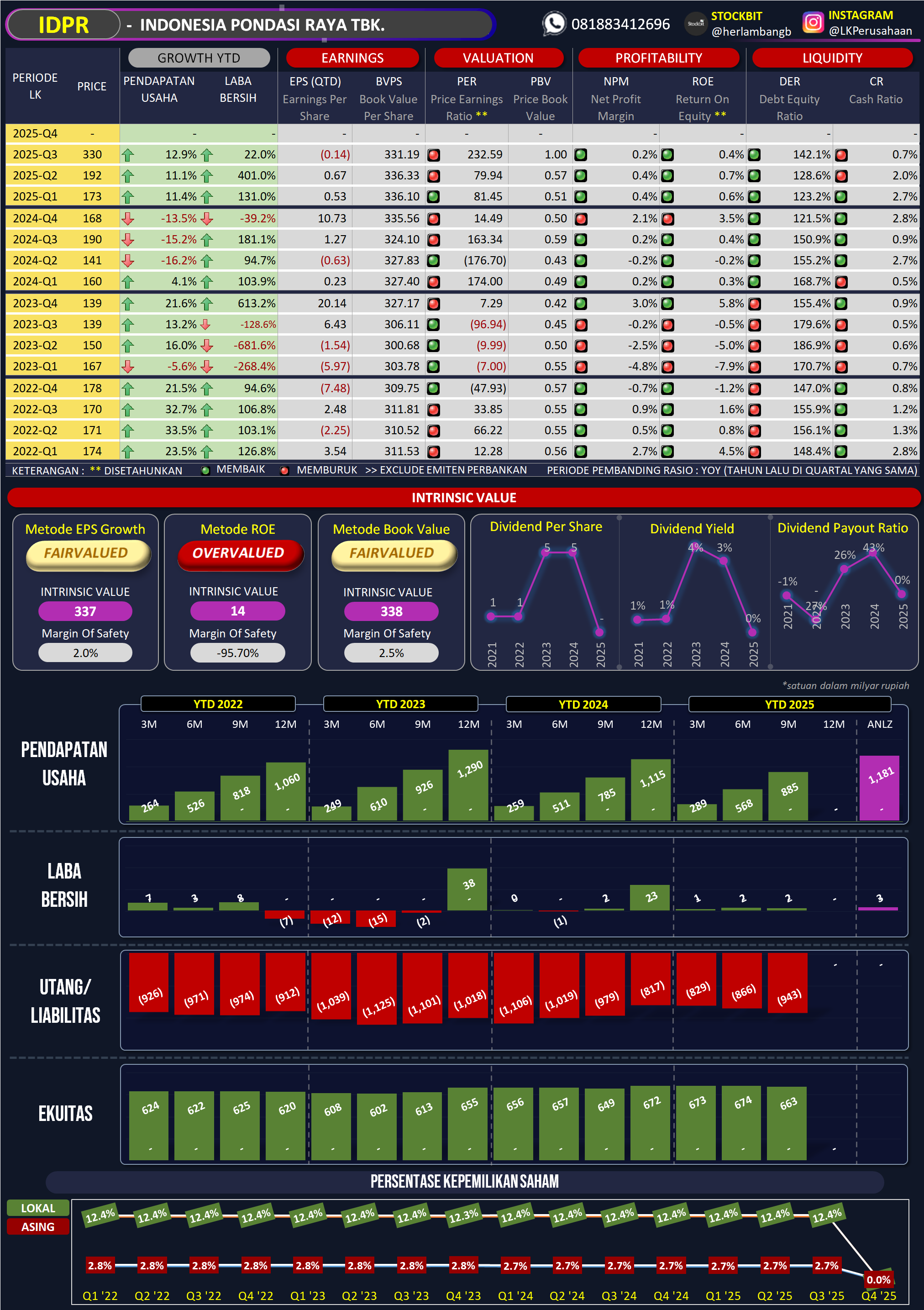 $IDPR yang perlu lebih di perhatikan lagi ya liabillitas jangka pendek yg lebih besar dr ekuitasnya kawan. kapan ini jatuh temponya