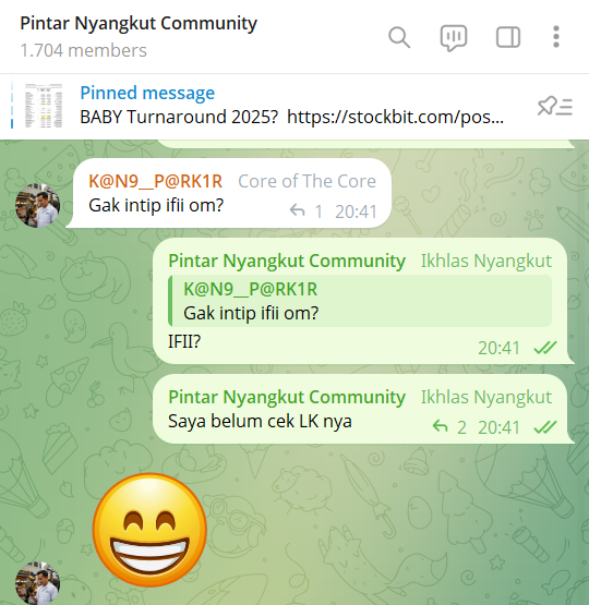 Untuk diskusi lebih lanjut bisa lewat External Community Pintar Nyangkut di Telegram dengan mendaftarkan diri ke External Community menggunakan kode: A38138