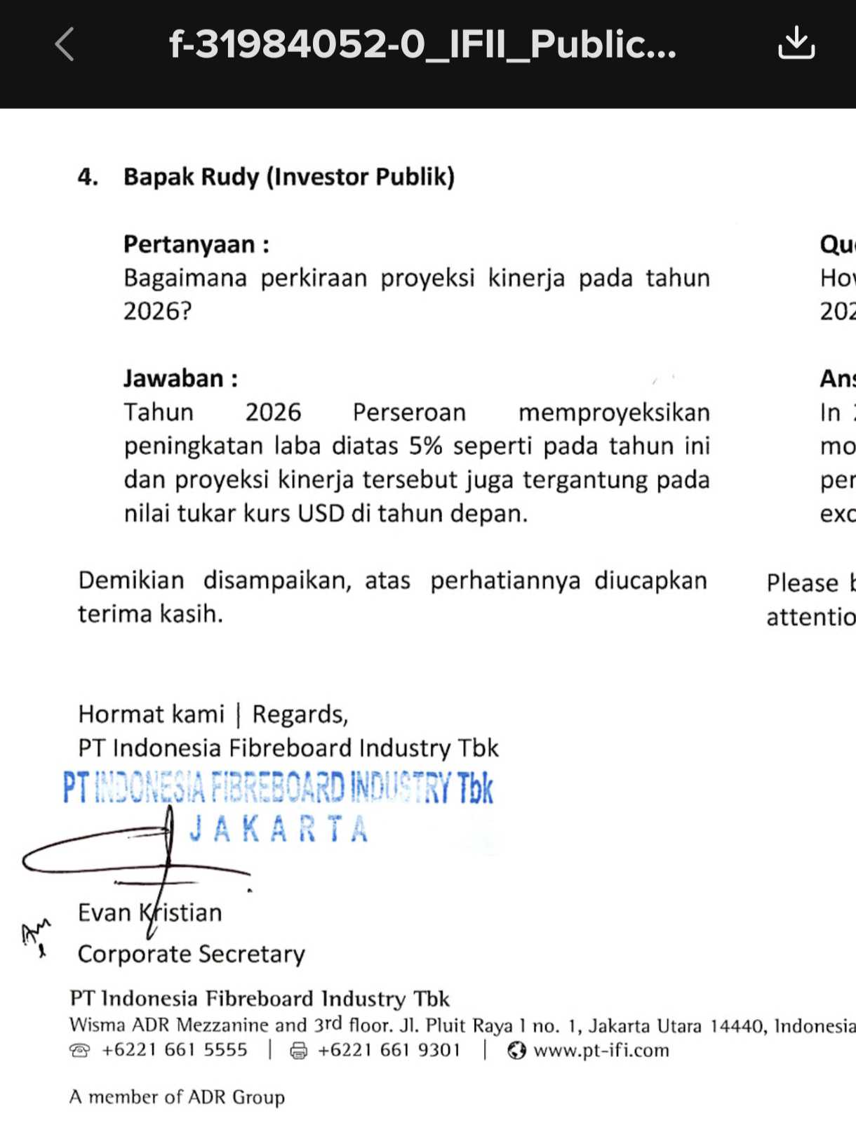 IFI adalah perusahaan industri pengolahan kayu yang fokus membuat MDF atau papan serat. Pabriknya berada di Sumatera Selatan, dan pasar utamanya justru bukan dalam negeri, tetapi ekspor terutama ke wilayah Timur Tengah. Produk utamanya dinamai MDF ME yang menyumbang mayoritas pendapatan, lalu ada MDF Jepang dan MDF reguler untuk pasar lokal. Siklus bisnisnya cukup standar manufaktur. Mereka membeli kayu dan bahan pembantu dari vendor dengan kredit sekitar 30 sampai 60 hari. Kayu diproses di pabrik menjadi MDF, lalu disimpan di gudang sebagai persediaan barang jadi sebelum dikirim ke pelanggan. Ketika barang diserahkan ke pembeli, pendapatan diakui dan muncullah piutang usaha, sehingga kas baru masuk beberapa waktu kemudian. Jadi pendapatan naik belum tentu berarti kas langsung naik. Dalam arus kas operasi terlihat jelas bagaimana penerimaan kas dari pelanggan bisa lebih rendah dari penjualan bersih karena piutang yang masih menggantung. Upgrade Skill https://cutt.ly/Ve3nZHZf
