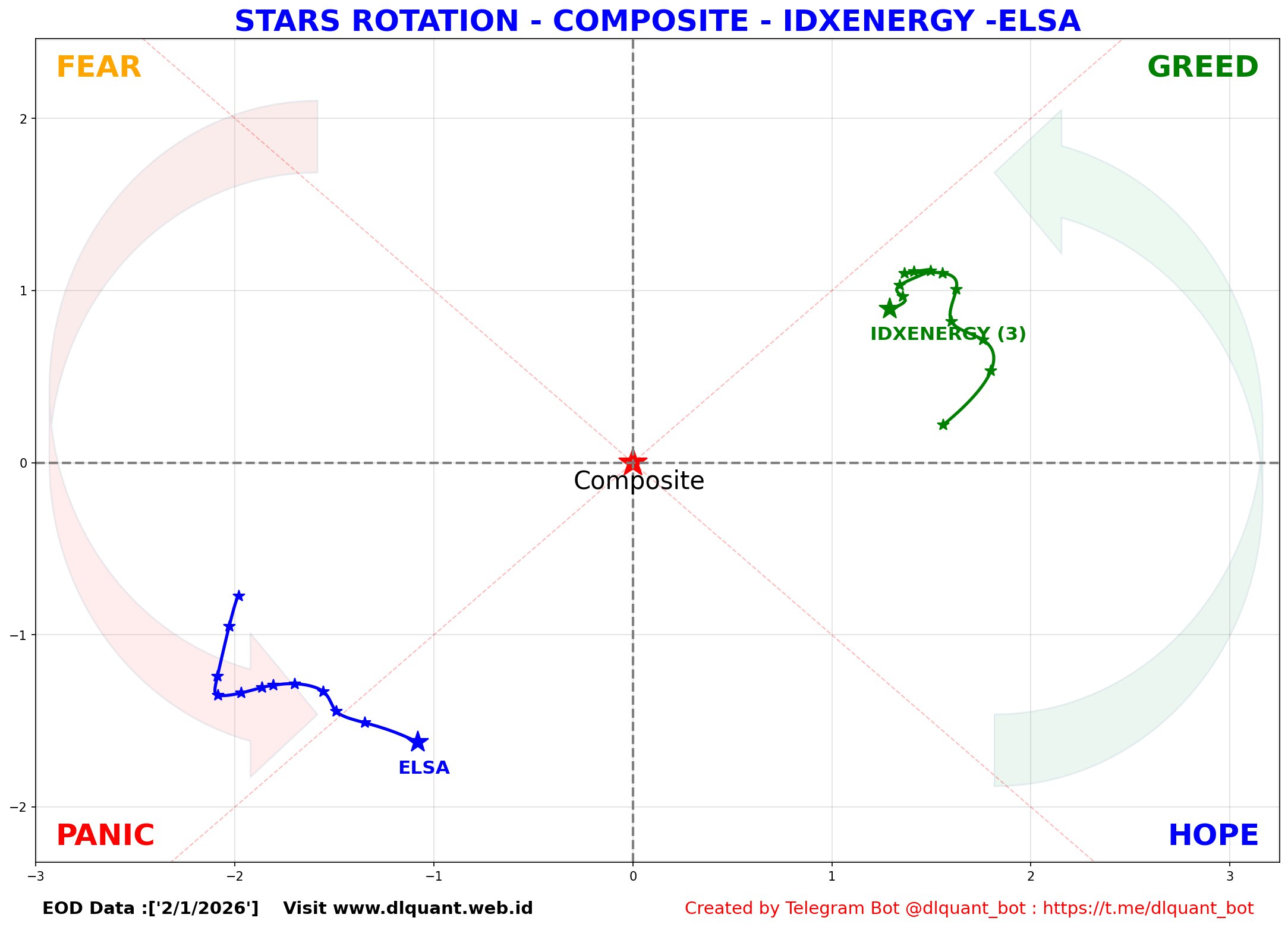 Daily star rotation saham $ELSA Relatif terhadap pergerakan $IHSG.