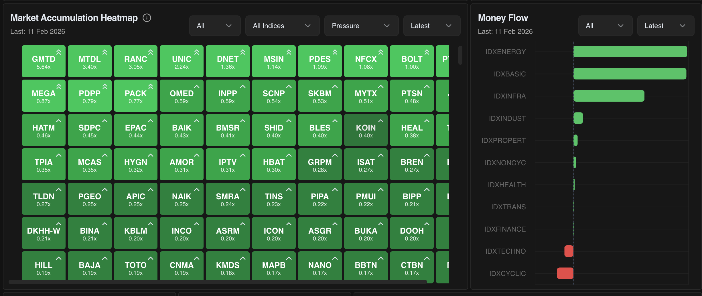 IDXChannel β Indeks harga Saham Gabungan (IHSG) kembali bergairah. Di tengah meredanya tekanan isu MSCI, reli saham-saham konglomerat mewarnai perdagangan Rabu (11/2/2026) usai Presiden Prabowo Subianto bertemu para taipan nasional.