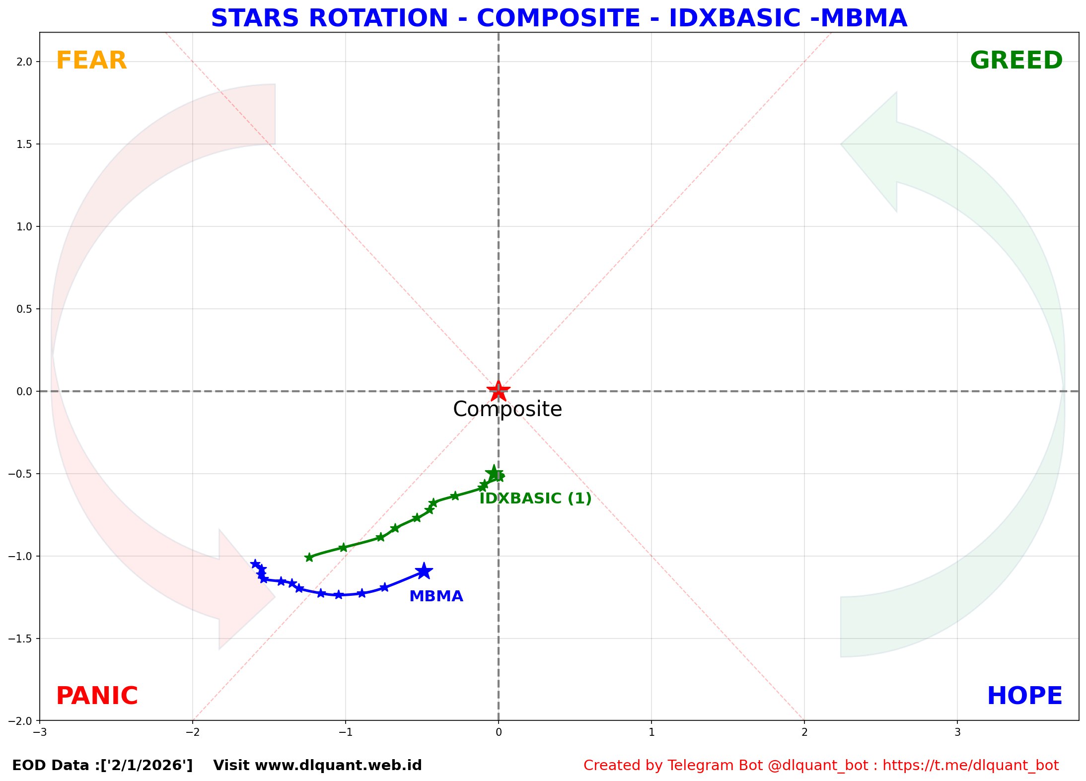 Daily star rotation saham $MBMA Relatif terhadap pergerakan $IHSG.