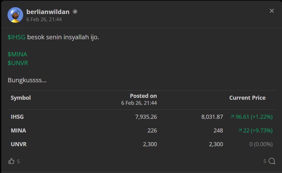 nekat speculative buy pas isu MSCI kemarin, eh malah dikasih rebound cantik, PANI emang beda! +23% gain secured, trust the process and let the profit run ๐๐ฅ