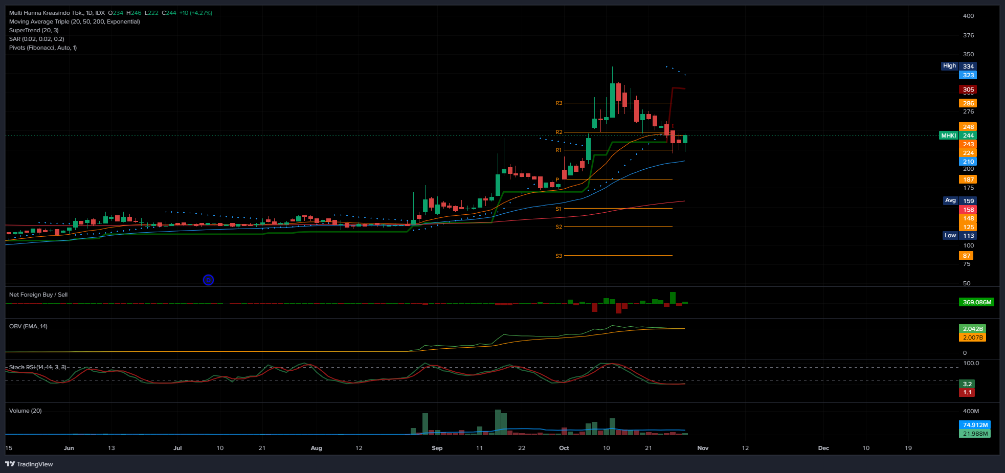 - Kenaikan volume, pergerakan OBV naik, serta net buy asing memperkuat sinyal bullish.