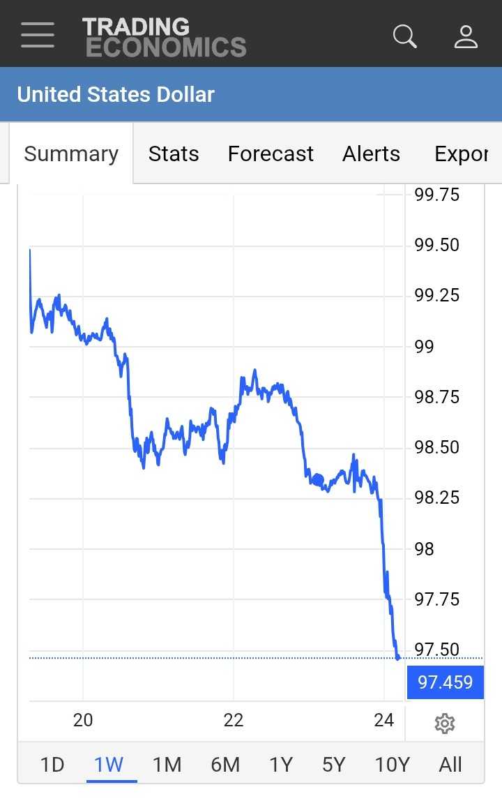 ✅ US Dollar Index DXY drop hingga menyentuh 97,5, dari semula kuat di atas 99