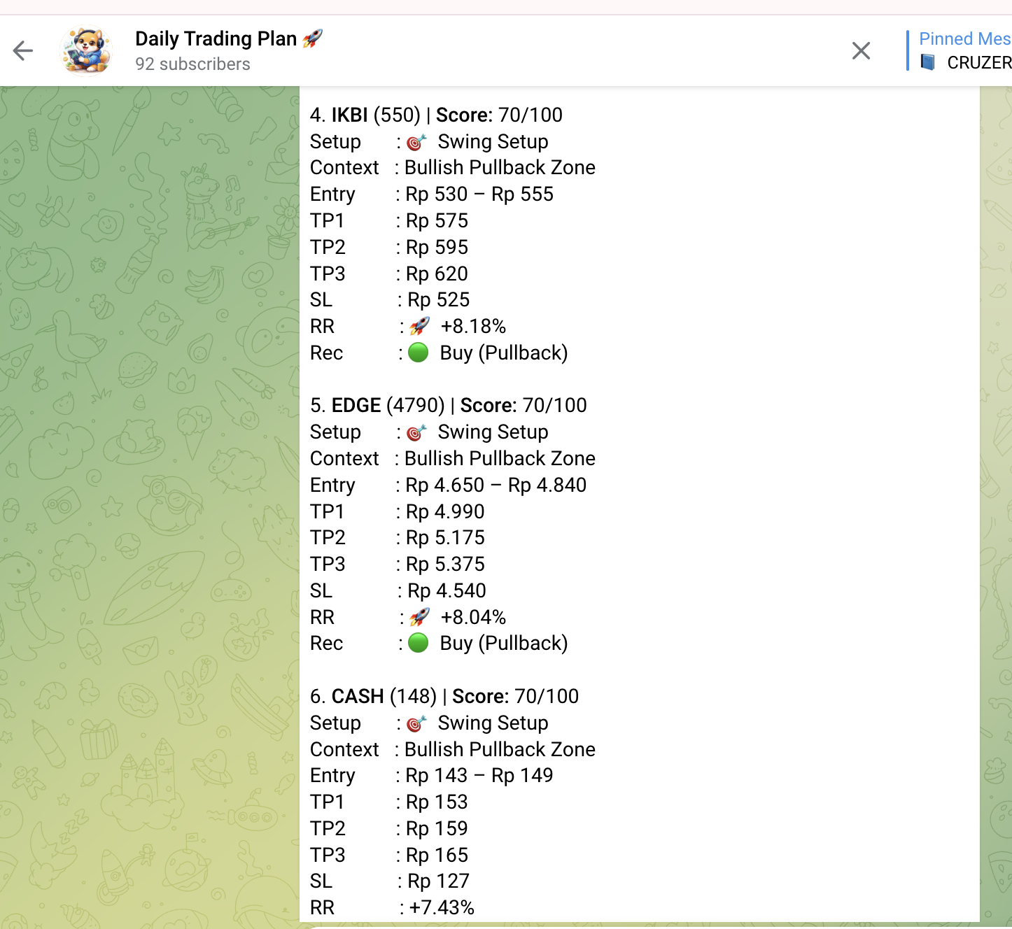 Sector Play: Saham-saham perikanan (IKAN, ASHA, ISEA) sedang dalam radar spekulasi pasar; perhatikan jika terjadi pergerakan serempak di sektor ini sebagai katalis tambahan.