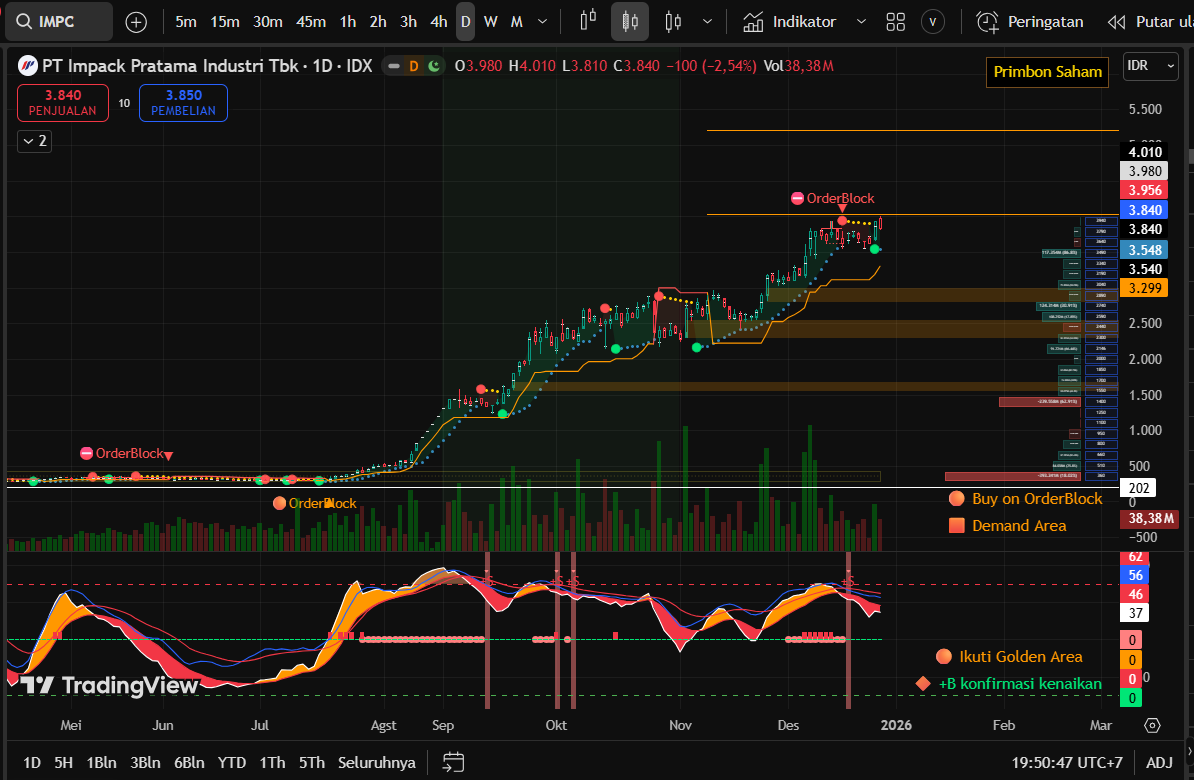 $IMPC: Pemegang saham Impack Pratama Industri, PT Harimas Tunggal Perkasa, menjual 742 juta saham IMPC dengan harga rata–rata Rp3.029/lembar atau senilai total ~Rp2,2 T pada periode 19–23 Desember 2025. Transaksi ini ditujukan untuk realisasi investasi dan meningkatkan free float. Setelah transaksi ini, porsi kepemilikan langsung PT Harimas Tunggal Perkasa di IMPC turun dari 37,7% menjadi 36,35%.