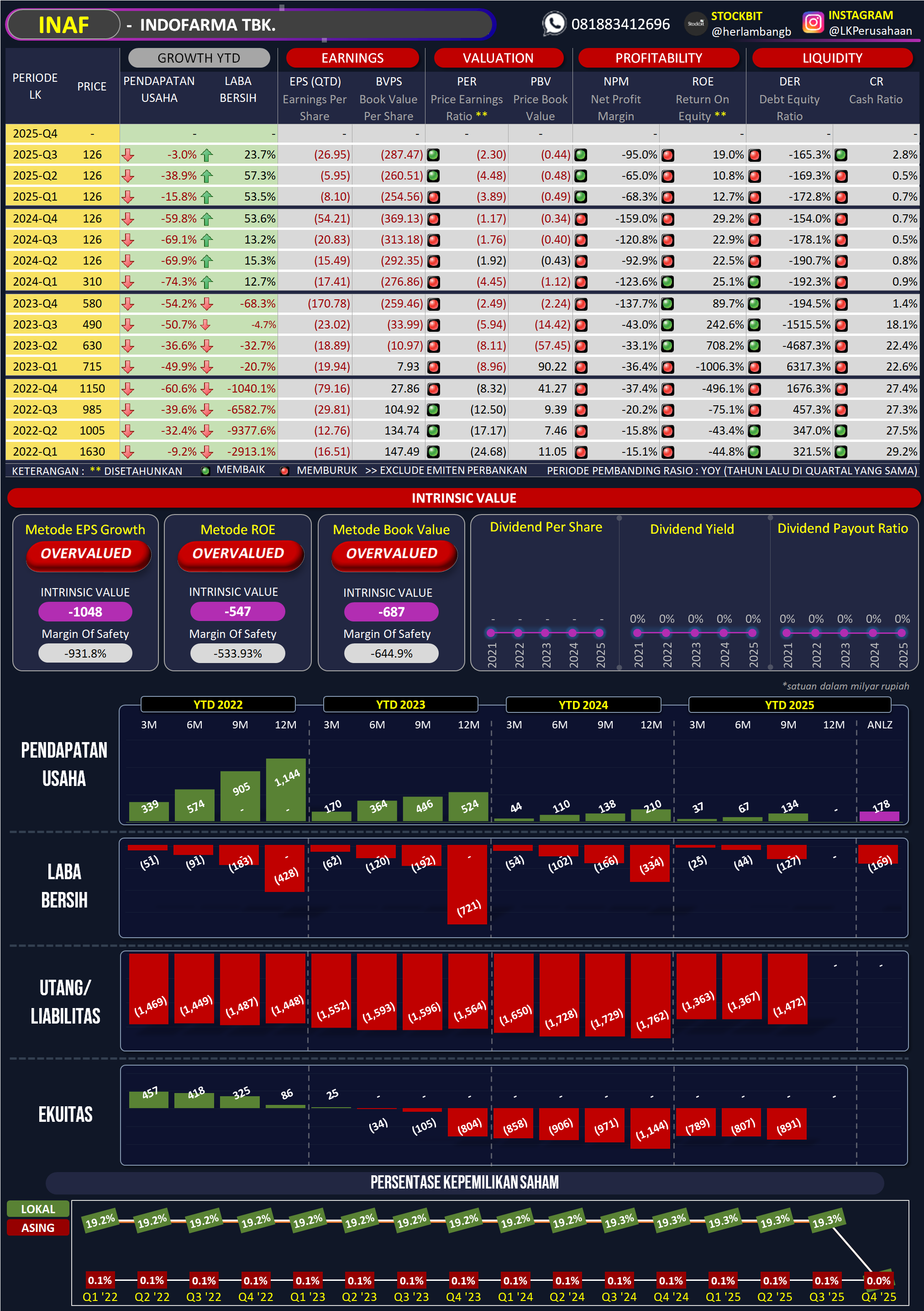 - Kinerja fundamental dan valuasi sangat tertekan dan belum sehat.