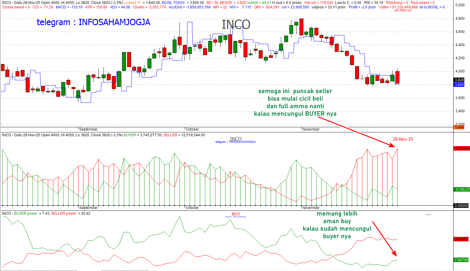 - INCO berada dalam fase konsolidasi setelah tekanan jual di sektor nickel.