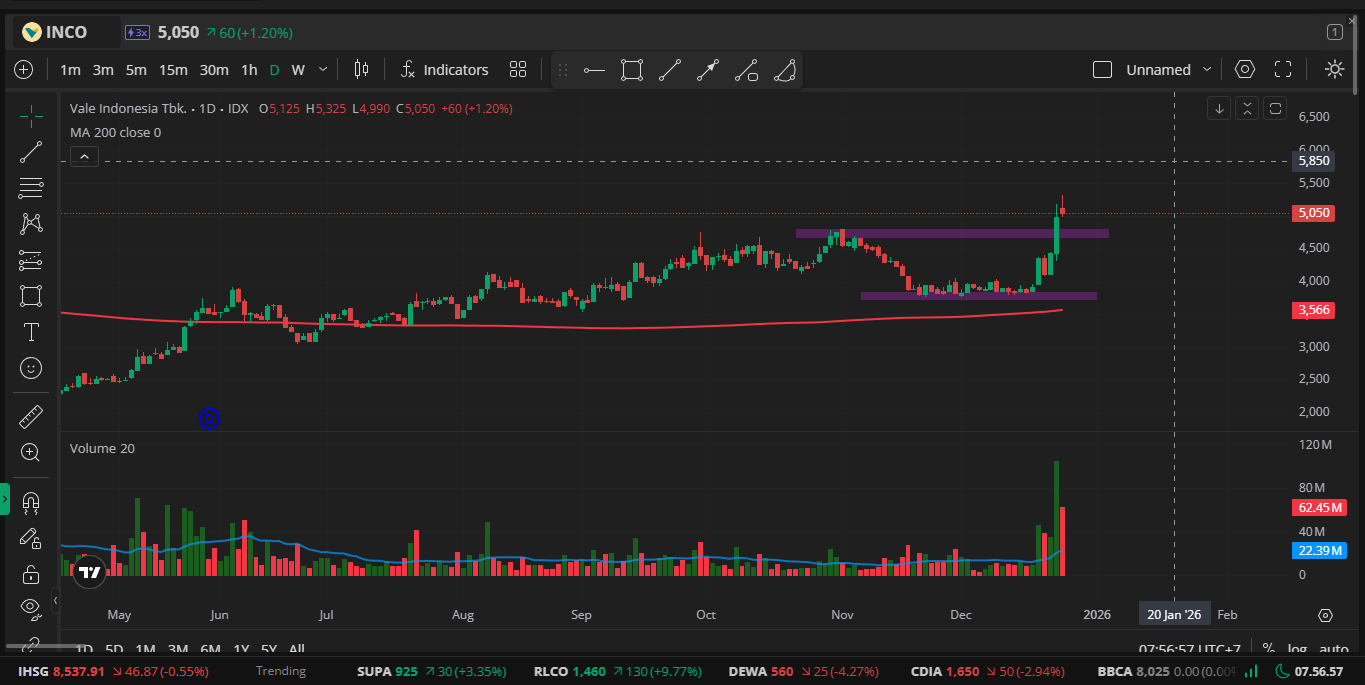 Akumulasi bertahap di level ini kalau kamu tahan volatilitas tinggi & suka momentum nikel target upside 10-20% Q1-Q2 2026 dari recovery harga nikel & demand EV global.