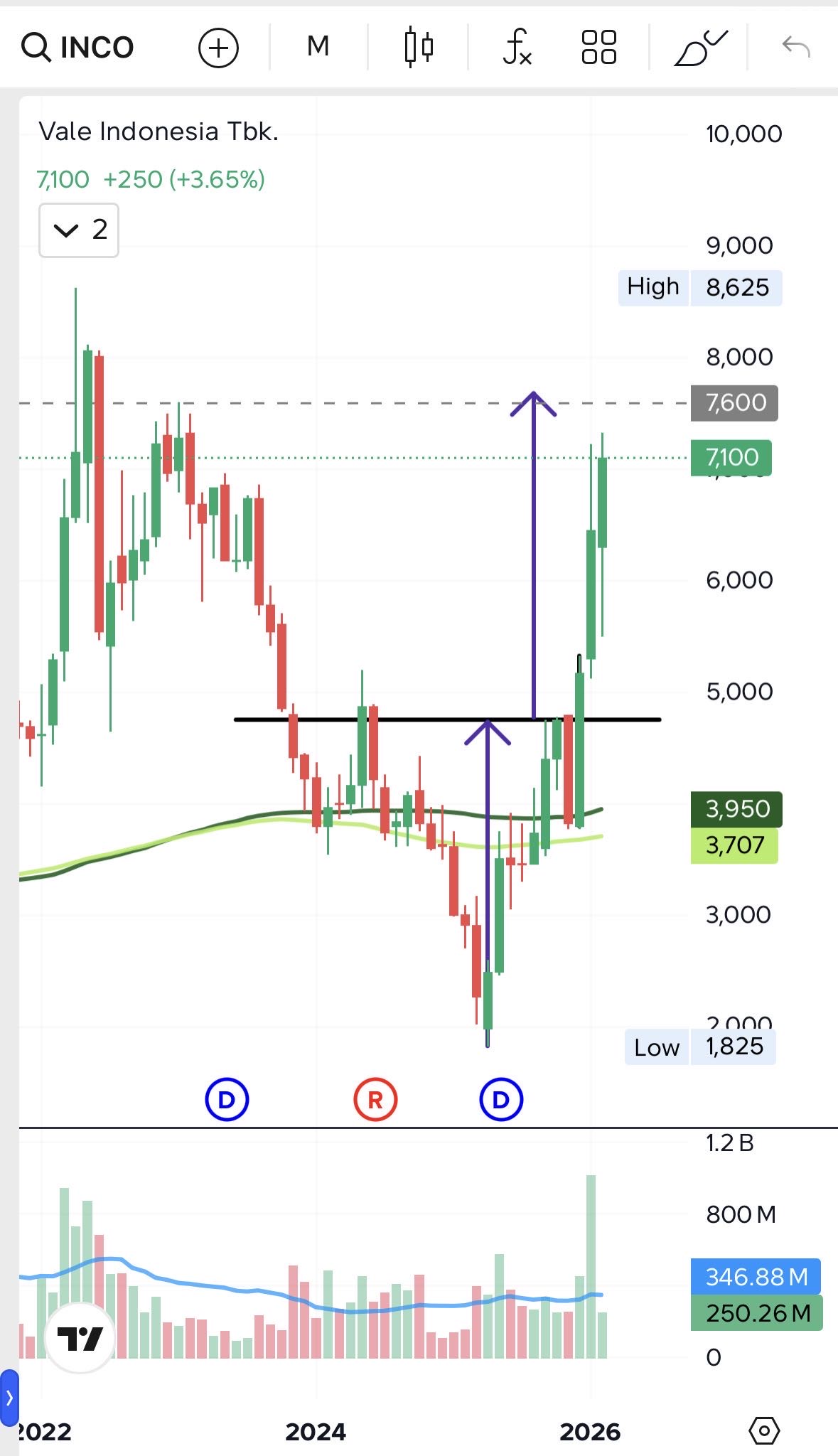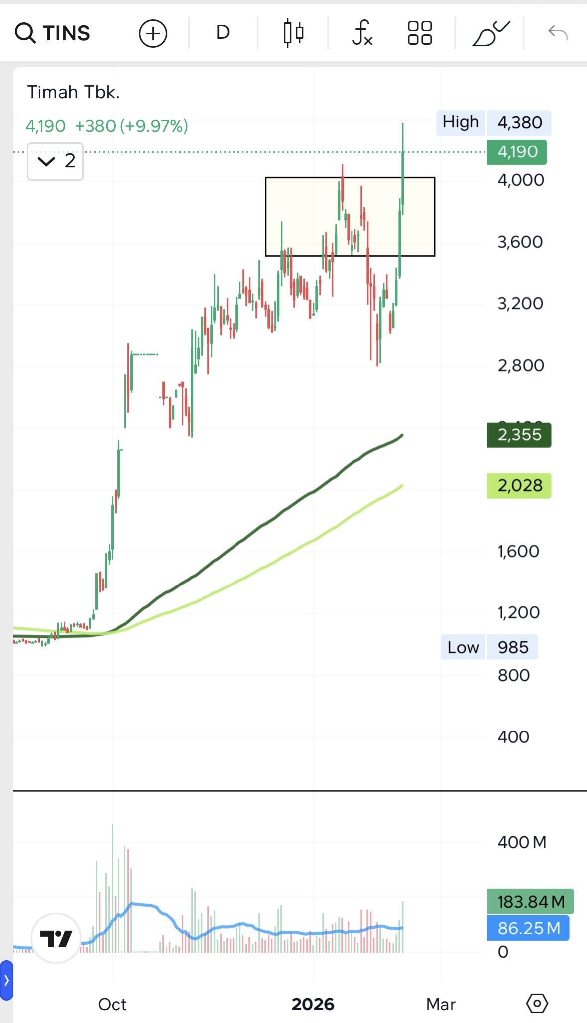Jadi perhatikan aja kisaran area itu, selama TINS ga breakdown kebawah itu, TINS viewnya overall masih bullish n bagus dengan Target bisa ke 4500an.