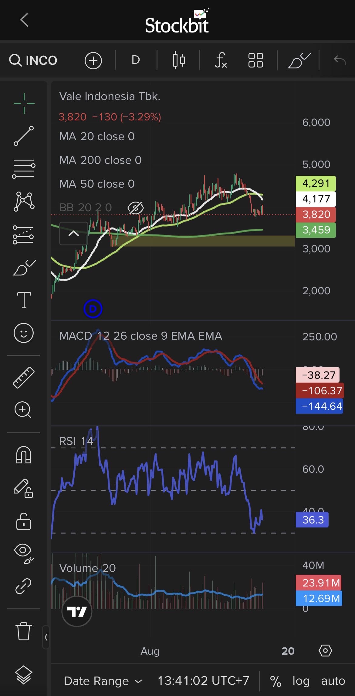 🔽 $INCO gap down ke 3450 (-450 / -11.54%) dari 3900