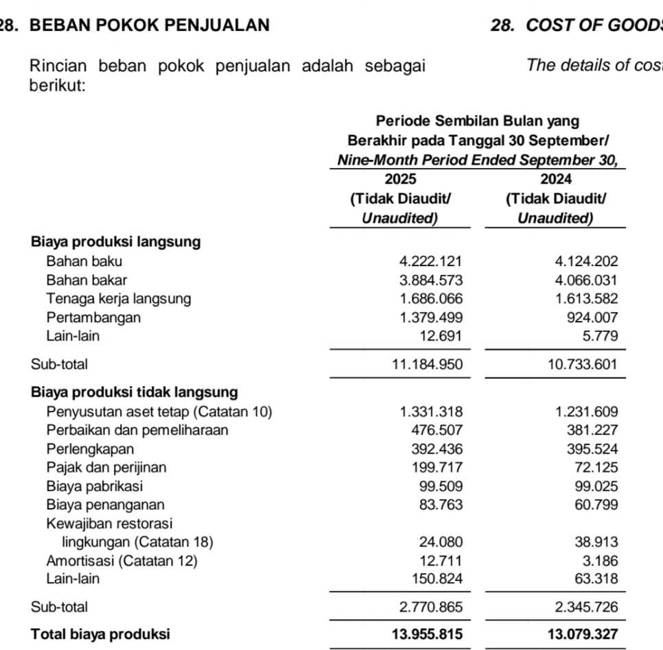 Sales Ore Rp 5,2 T di Q3 2025 hanya membebani $NCKL COGS Pertambangan Rp 1,37 T