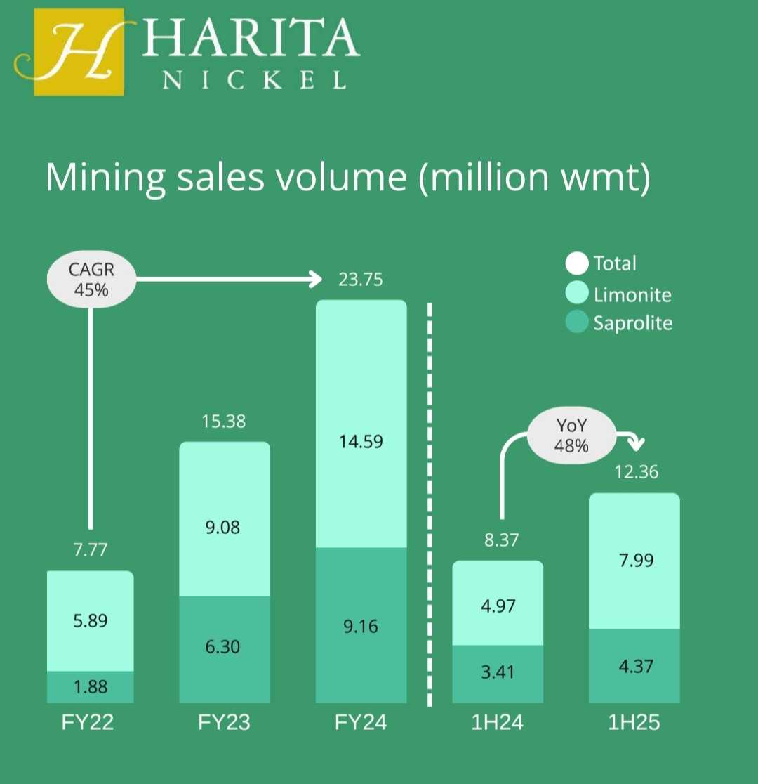 RKAB 2025: Tidak ada info, tapi dari grafik disini ada kenaikan produksi hampir 50 persen di Q1 2025 terhadap Q1 2024 maka asumsikan saja RKAB NCKL di 2025 naik 50 persen menjadi 30 Juta ton.