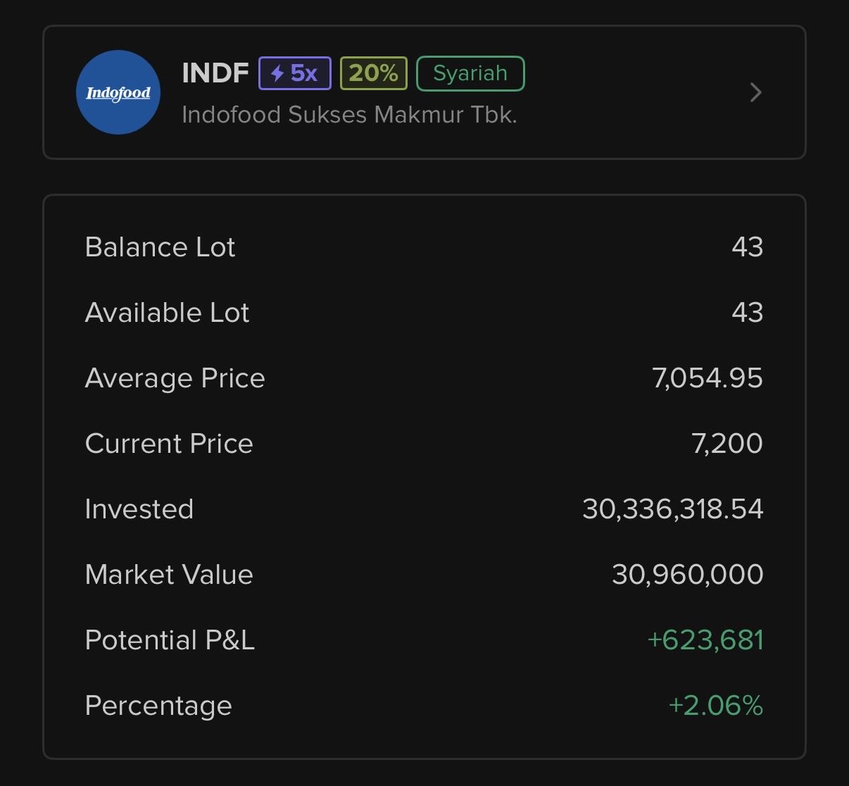 $INDF coba waktu deket support kmrin min beli 30% dari dana tabungan. Udah lumayan untungnya klo dh 8% mana INDF fundamentalnya baik. Nunggu koreksi sehat dlu baru masuk lagi utk avg up.