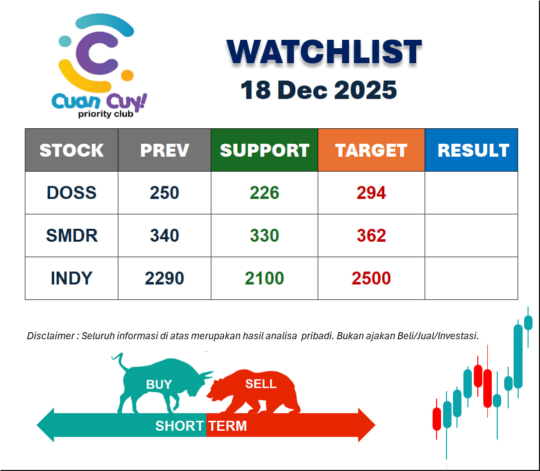 - Jika ada yang tidak cuan hari ini, bisa pantau hingga beberapa hari ke depan selama tidak break support.