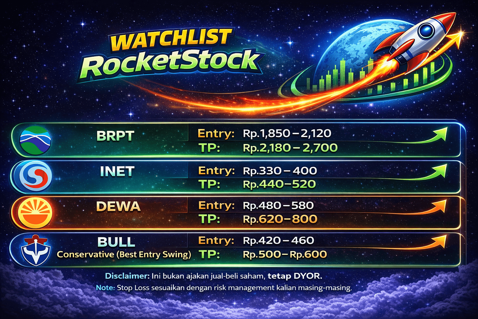 $BRPT menurut gue menarik karena bisnisnya udah mapan di energi/petrokimia, tapi tetap siklus dan sensitif sentimen, jadi kalau masuk cuma karena ikut-ikutan rekomendasi orang, pas koreksi dikit biasanya mental langsung rontok. $INET lagi di fase penting, ada cerita ekspansi dan proyek, tapi volatilitasnya juga brutal; ini tipe saham yang bisa bikin porto lo hijau tebal atau merah pekat dalam waktu singkat, jadi jangan nyemplung kalau lo belum siap goyangannya.