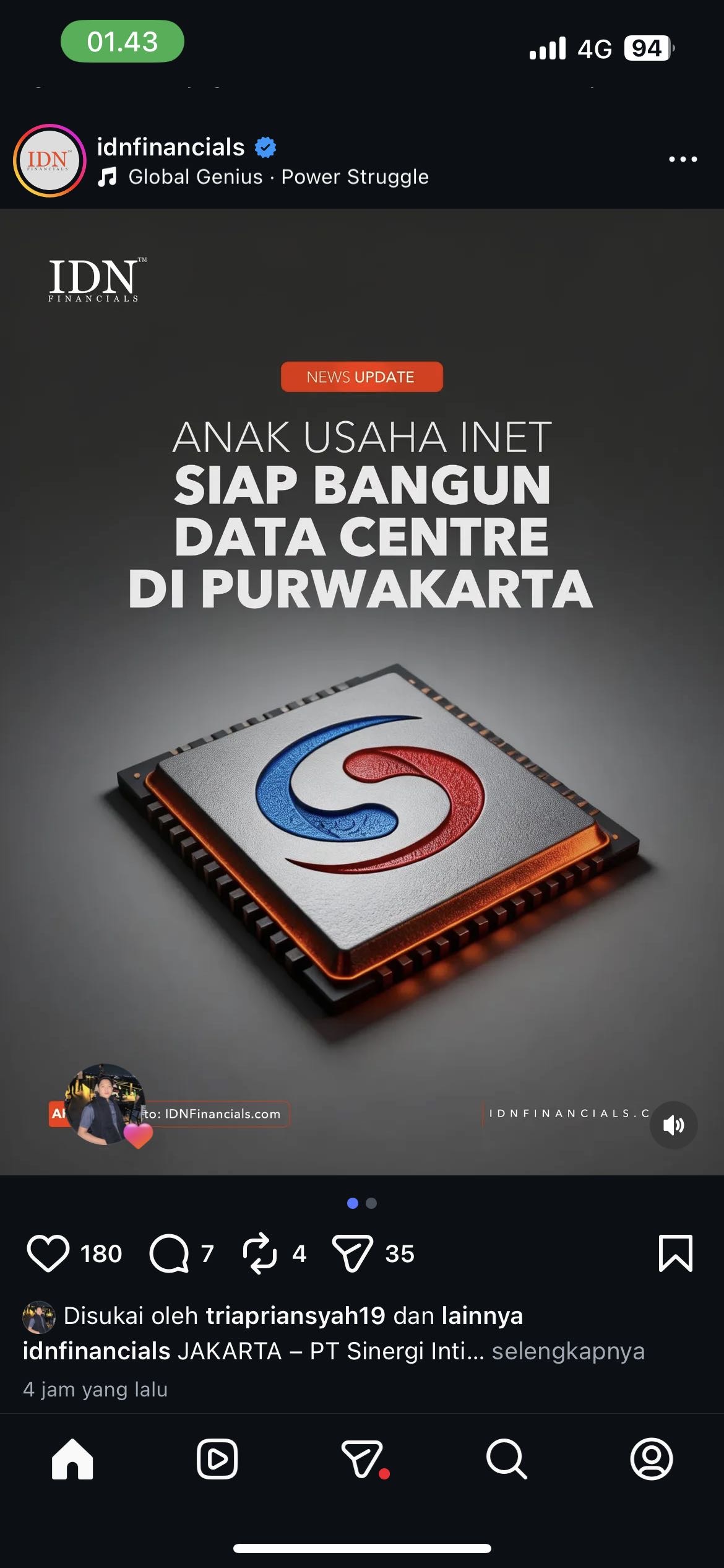Proyek green data center Purwakarta via SIDI menempatkan INET di jalur yang sama dengan tren hyperscale/data center nasional; jika ramp‑up berhasil, bisnis data center bisa menjadi mesin EBITDA tinggi, melengkapi pendapatan berulang dari internet & jaringan fiber.