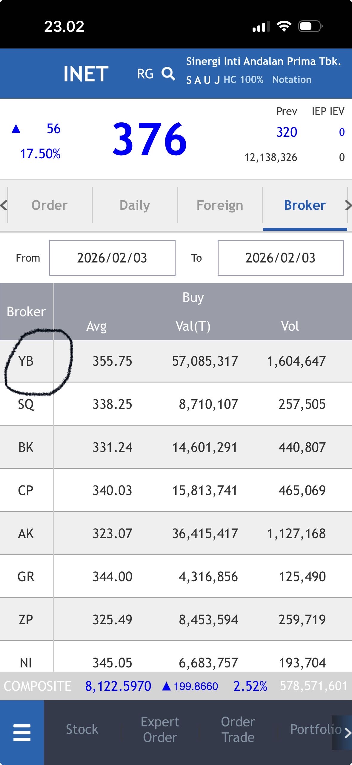$INET Kode broker YB adalah Yakin Bertumbuh Sekuritas (sebelumnya dikenal sebagai Jasa Utama Capital Sekuritas). Ini adalah perusahaan sekuritas lokal Indonesia yang terdaftar aktif di Bursa Efek Indonesia (BEI) dengan izin sebagai Perantara Pedagang Efek dan Penjamin Emisi Efek, serta melayani transaksi saham online.