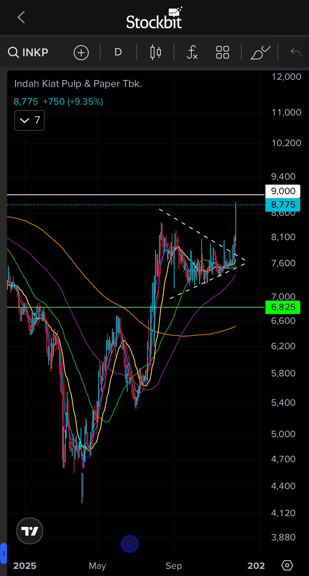 $INKP mulai jalan, breakout daily trend, sekarang masuk area resistance penting 8775-9000, break area ini konfirmasi trend lanjut, masuk di area sekarang high risk