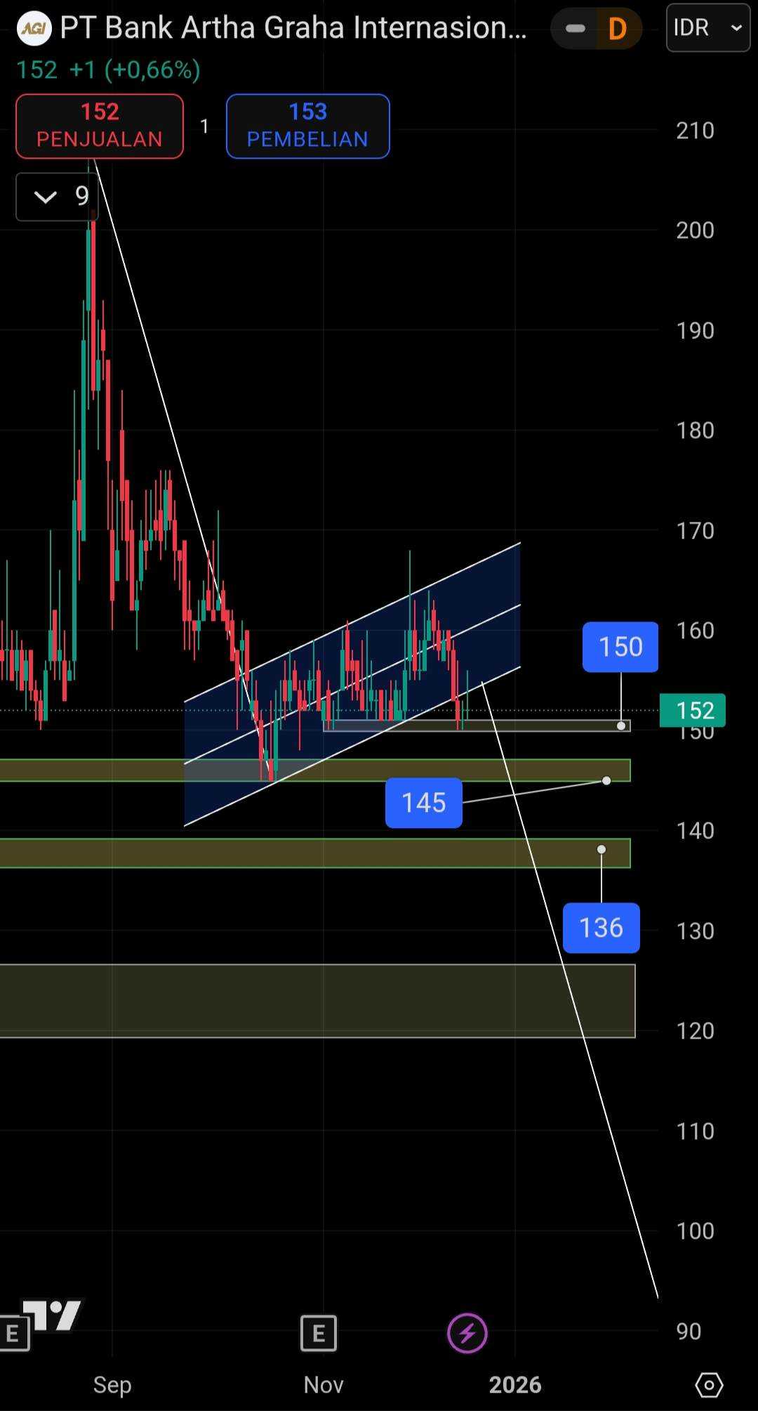 SL: Rp125 (-14.97% dari entry agresif Rp147)