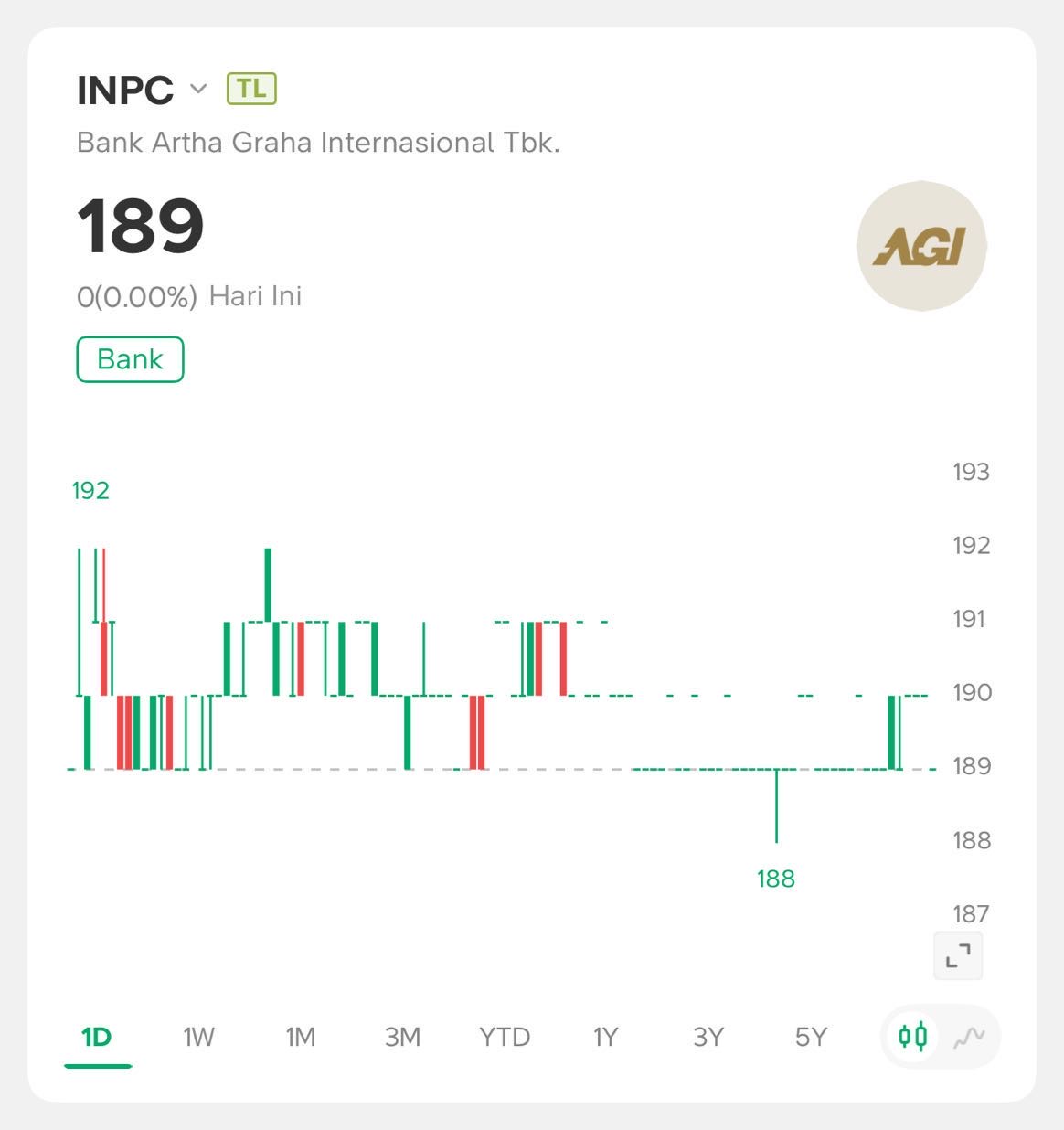 PT. Bank Artha Graha Internasional Tbk (INPC) bergerak dalam bidang jasa perbankan umum. Bank memulai kegiatan komersialnya sebagai lembaga keuangan non-bank pada Januari 1975, dan kemudian bergerak dalam layanan perbankan umum tertanggal 24 Februari 1993.