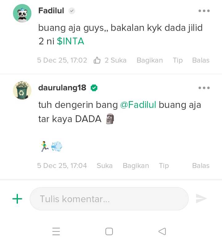 udah sebulan lebih nebar fear, artinya sampai skrg belum dapat barang di $INTA hhhahahaha begitu syulit hidupmu