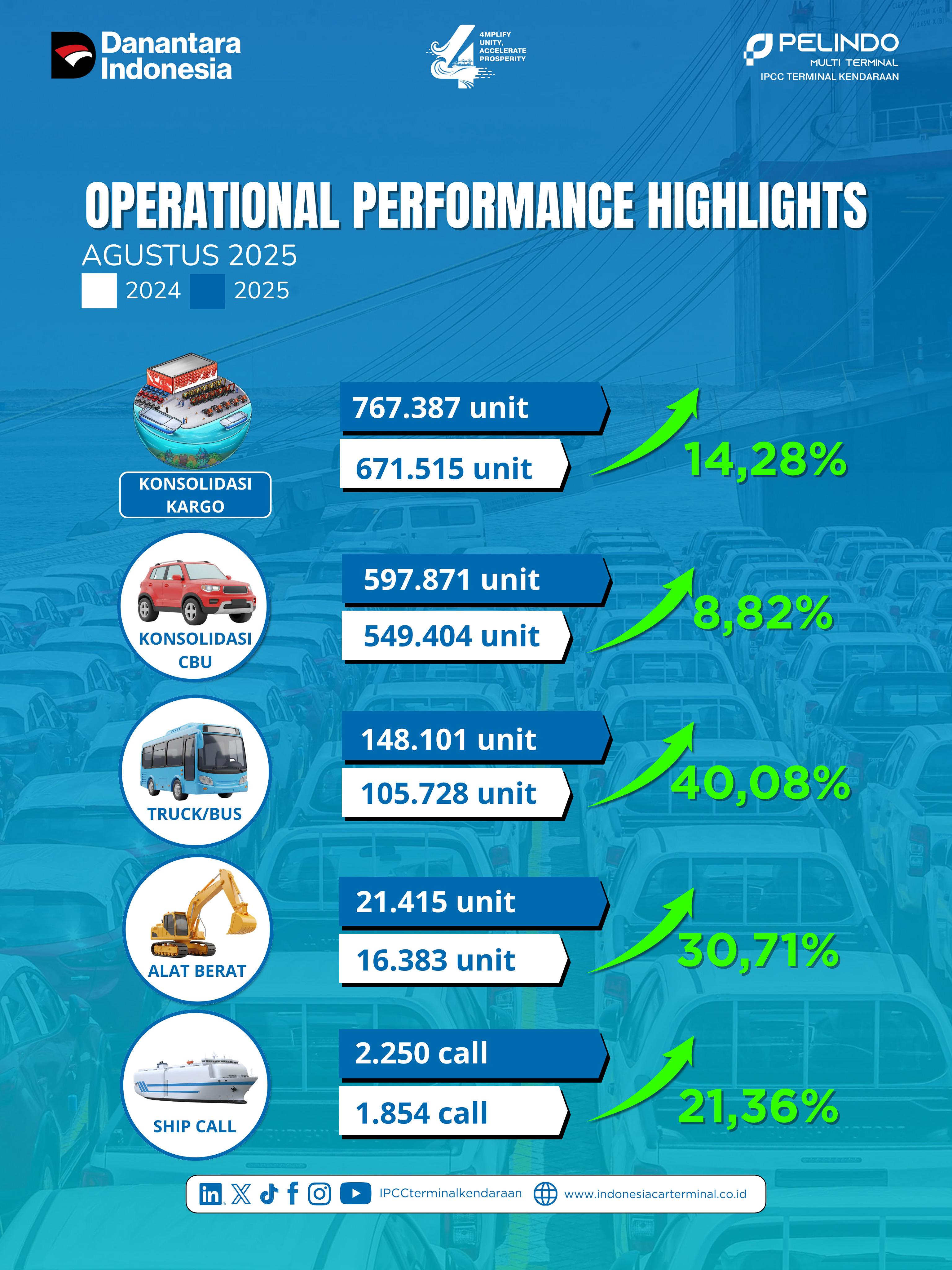 $IPCC Terminal Kendaraan mencatatkan pertumbuhan kinerja yang luar biasa pada bulan Agustus 2025. Angka-angka ini membuktikan bahwa kepercayaan pelanggan semakin kuat, sejalan dengan komitmen kami menghadirkan layanan yang andalan, efisien, dan berstandar internasional: