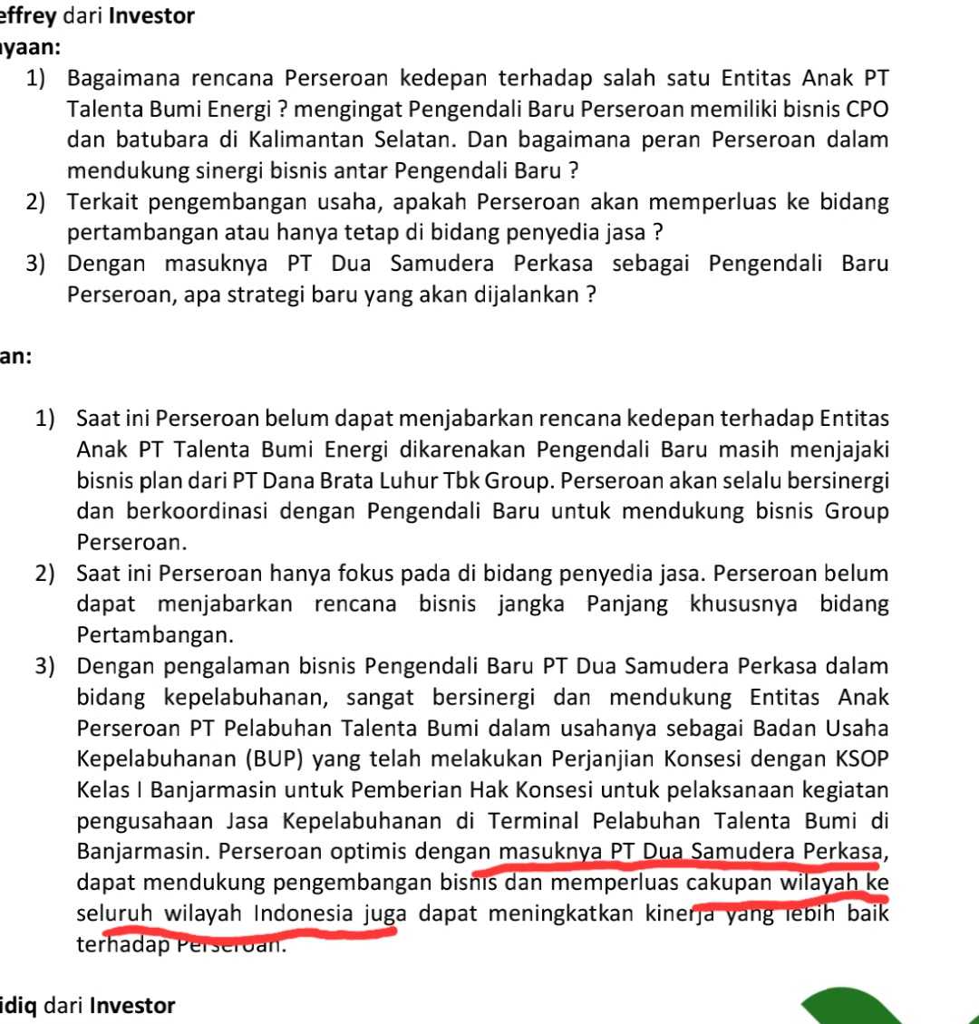 $TEBE kuncinya disini...perhatikan jawaban pubex nya....dengan perubahan ini artinya tebe bisa menjangkau wilayah kerja seluruh indonesia. patimban, papua, makasar, sumatera, smua ada bisnis pak haji disitu. market cap msh kecil, gas kan terus ikut pak pp masuk msci tahun depan....$IPCC $CDIA