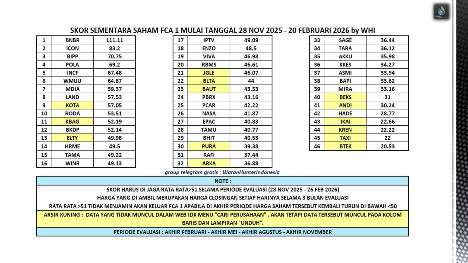 🔰update skor sementara saham FCA Kriteria 1🔰