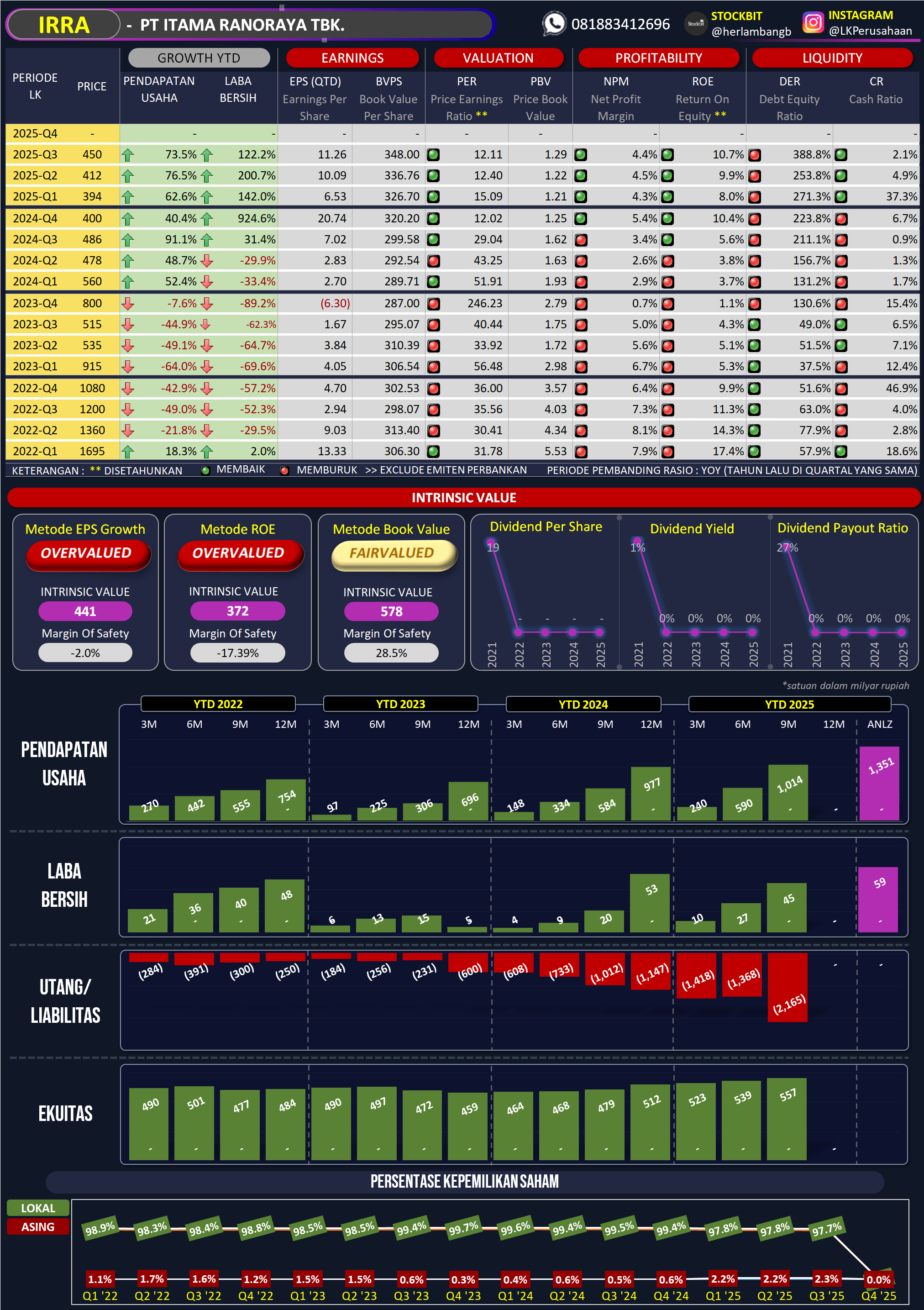 STOCKWATCH.ID (JAKARTA)- Kinerja keuangan PT Itama Ranoraya Tbk (IRRA) solid sepanjang tahun sembilan bulan 2025. Ini terbukti dari penjualan dan laba yang kompak tumbuh. IRRA mencatat bersih tahun berjalan sebesar Rp44,60 miliar (Rp29,58 per saham) pada kuartal III 2025, melonjak 122,15% dibanding ...