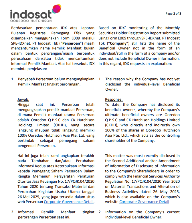 Untuk case $ISAT UBO nya adalah perusahaan milik negara alias BUMN di Qatar, jelas mustahil sebut nama orang atau individu sebagai UBO. Sama seperti case BUMN $TLKM atau BBRI itu mustahil kan sebut UBO terakhir nama orang atau individu karena itu adalah BUMN maka UBO nya ya Danantara atau pemerintah Indonesia. Ndak mungkin kan sebut nama Hidup Jok, eh maksudnya, nama menteri sebagai UBO BUMN karena negara dan pemerintah adalah milik bersama seluruh rakyat bukan milik nenek moyang atau dinasti individual. Upgrade Skill https://cutt.ly/Ve3nZHZf