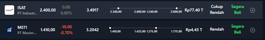 2. $ISAT. Oscillator mulai muncul sinyal awal bullish. Potensi membentuk pola cup n handle. Foreign big accumulation. Buy area 2360-2430.