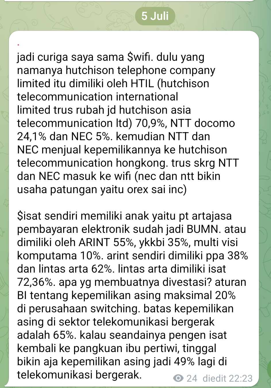 @NorthstarBull bagaimana dengan mekanisme akuisisi $LINK, berarti bukan hanya dengan $ISAT, $WIFI juga akan ada hubungannya dengan Axiata?