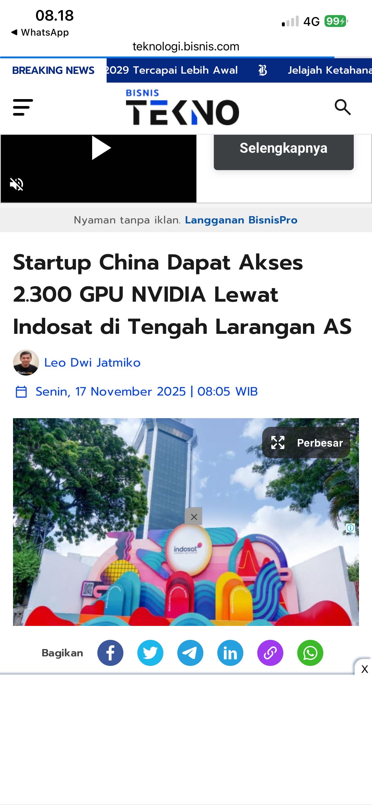 $ISAT: Direktur Utama Indosat, Vikram Sinha, membeli ~2,37 juta saham ISAT dengan harga rataโrata 2.106 rupiah per lembar pada 7 November 2025. Total nilai transaksi mencapai ~5 miliar rupiah. Setelah transaksi ini, kepemilikan Vikram di ISAT naik dari 0,0272% menjadi 0,0346%.