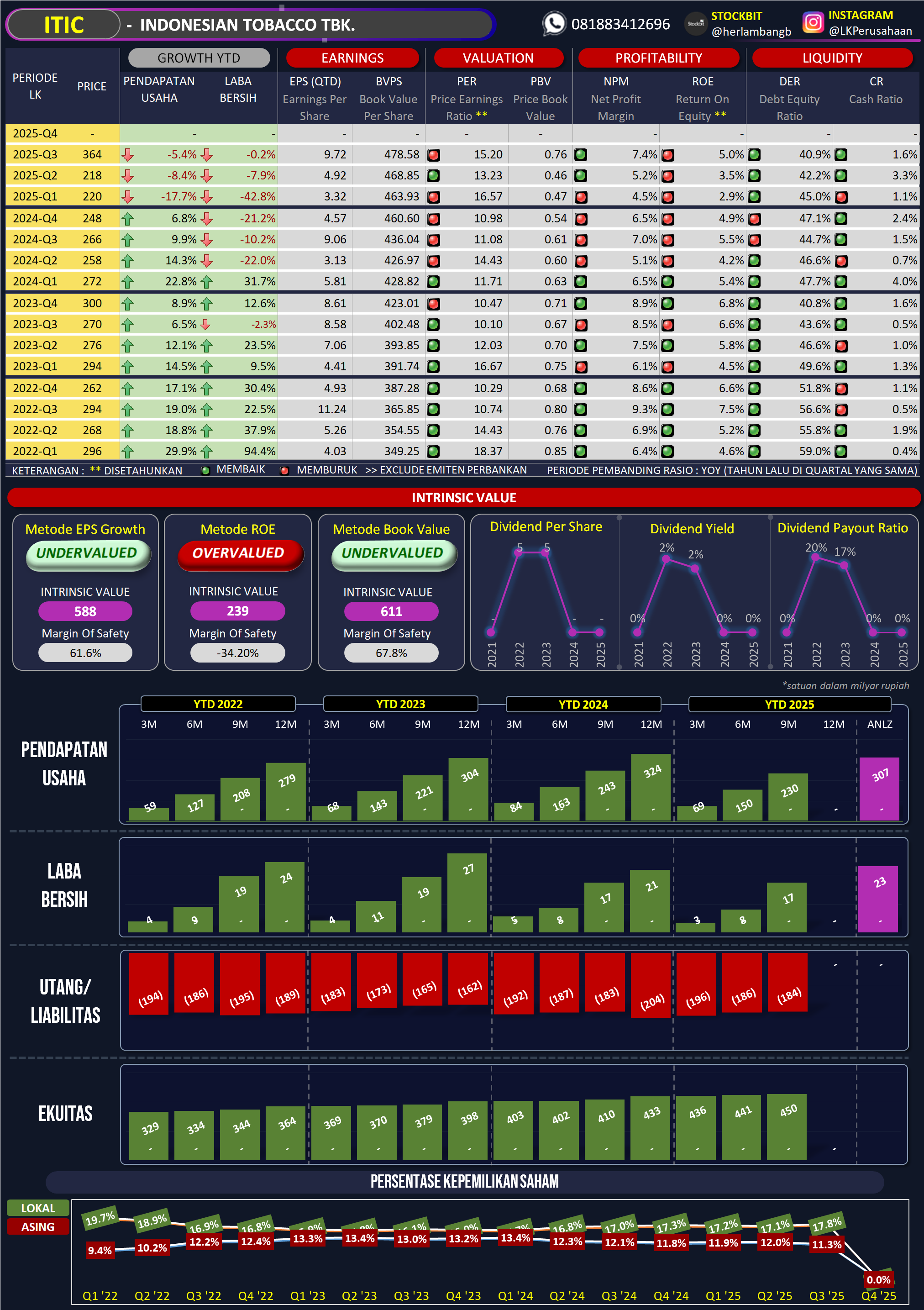 ITIC adalah perusahaan rokok pertama yang merilis LK Q3 2025. Banyak pihak sempat berharap bisnis rokok akan kembali cetak laba gede setelah Menteri Keuangan berganti dari Sri Mulyani yang hampir setiap tahun mendorong kenaikan cukai ke Purbaya yang diharapkan lebih ramah terhadap industri. Namun pergantian menteri keuangan baru terjadi awal September 2025 sehingga data LK Q3 2025 ini bisa jadi belum mencerminkan dampaknya. Pertanyaan besarnya tentu apakah perubahan kebijakan cukai ini benar-benar bisa mengangkat kembali performa ITIC yang selama ini tersendat karena regulasi yang menekan. Upgrade Skill https://cutt.ly/Ve3nZHZf