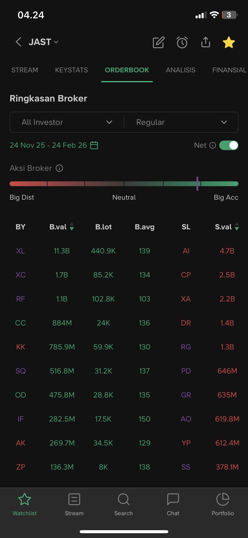 $JAST kalo tarik broksum 3 bulan ini masih banyak yg nyangkut juga harga atas, smoga bisa dikerek naik lagi tinggal nunggu timing aja π