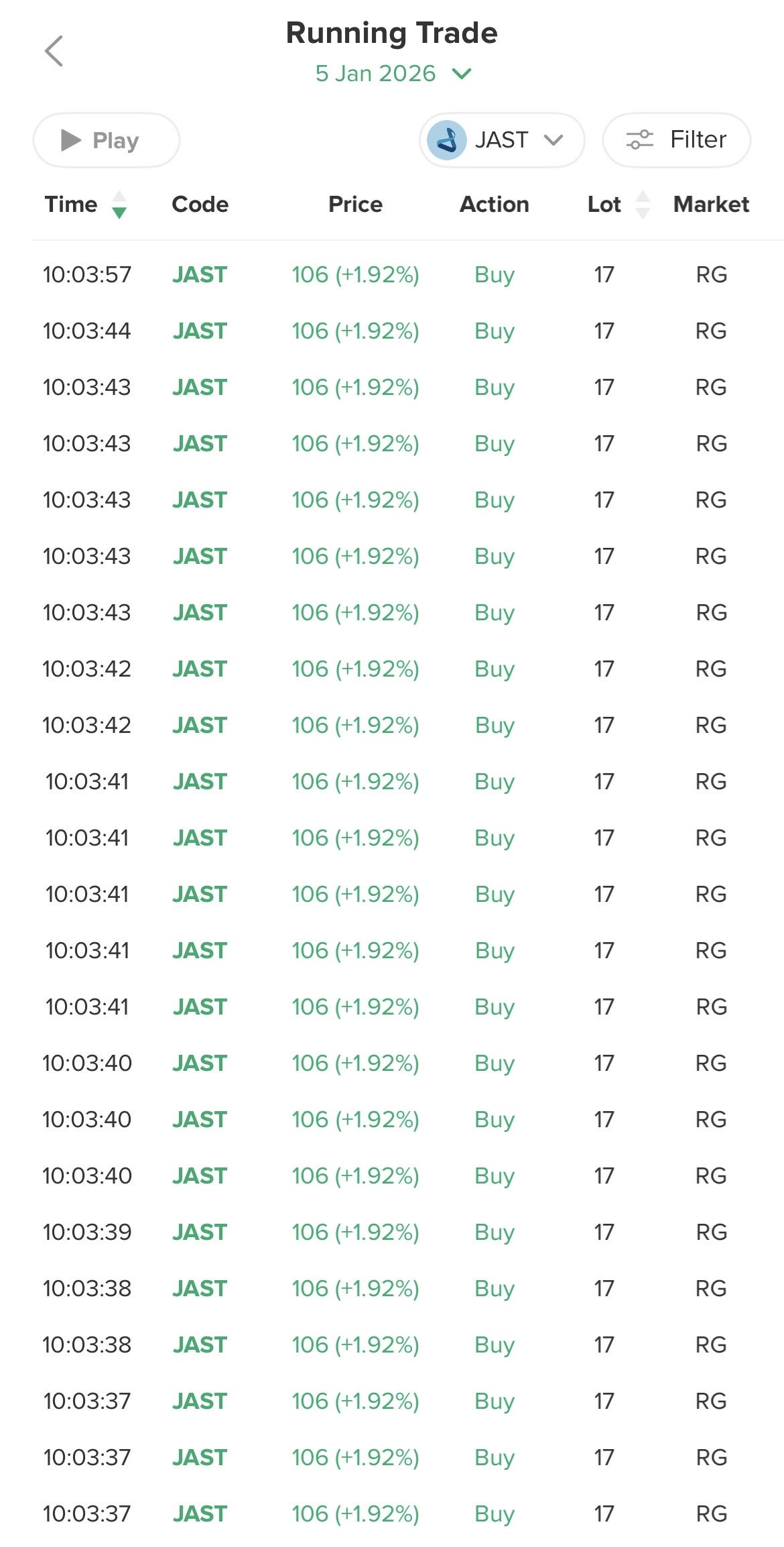 - Sentimen: Positif - Didukung oleh tren makro IDX Composite yang mencapai rekor tertinggi, kenaikan market cap JAST yang signifikan, dan proyeksi pertumbuhan profit yang optimis.