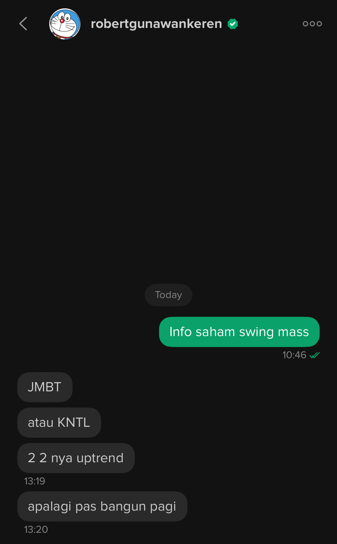 Percayalah gais, saham itu, kalo uda waktunya naik, naik nya bisa ga disngka2, bisa jadi smggu lgsg bagger, selama kamu pilih saham yg tepat.