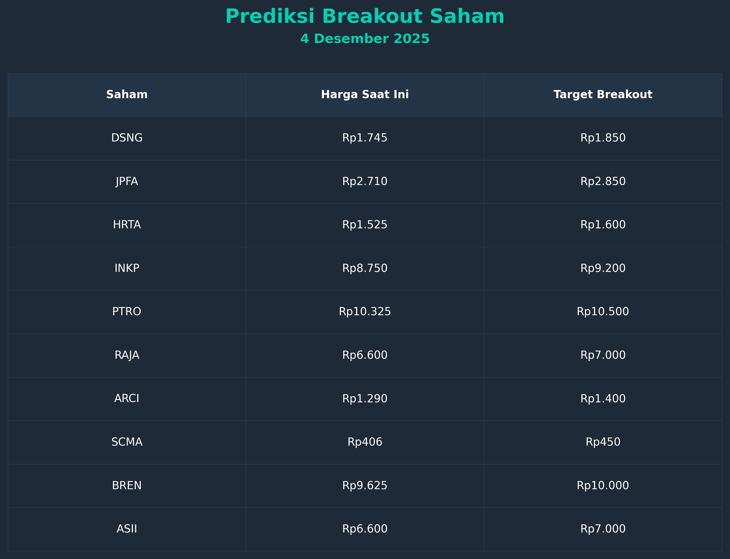 Indeks Harga Saham Gabungan atau IHSG diramal naik pada perdagangan hari ini, Kamis (4/12), usai ditutup turun tipis 0,06% ke level 8.611 pada perdagangan kemarin. Analis merekomendasikan saham PT Indosat Tbk (ISAT), PT Japfa Comfeed Indonesia Tbk (JPFA) hingga PT Astra International Tbk (ASII).