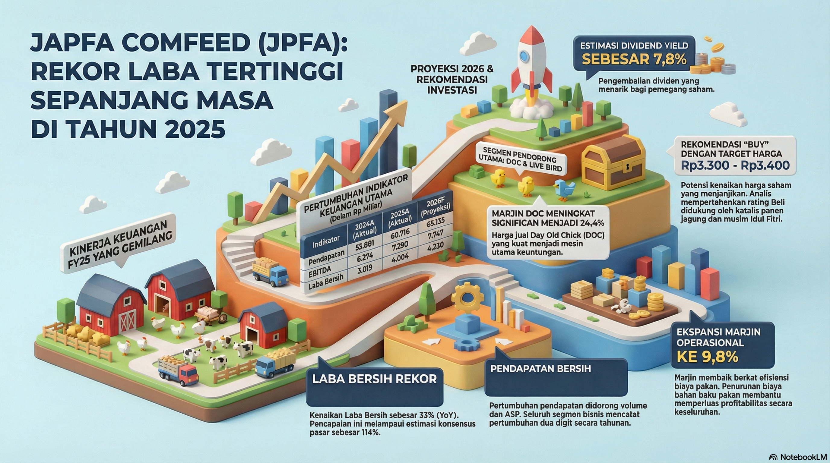 Berikut adalah rangkuman insight dan prospek saham $JPFA (Japfa Comfeed Indonesia) untuk tahun 2026 berdasarkan laporan keuangan terbaru FY25