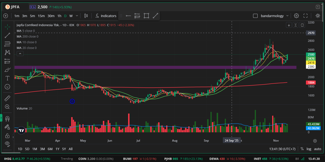 $JPFA hari ini konfirm bbeli , signal beli kuat, masuk di area anak tangga ke 3 vpa nya.. bisa lanjut ke 2700