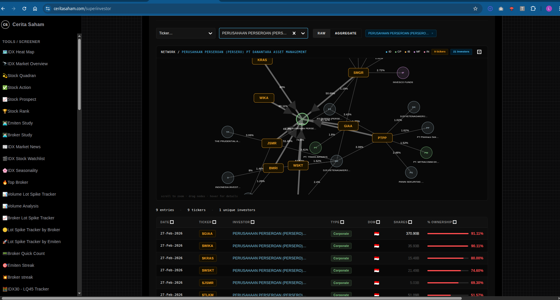 - KSEI menyampaikan laporan kepemilikan saham di atas 1% per 27 Februari 2026. Hal ini dilakukan menindaklanjuti keputusan OJK dalam rangka pemenuhan penyediaan data kepemilikan saham perusahaan terbuka kepada publik. (Keterbukaan informasi)